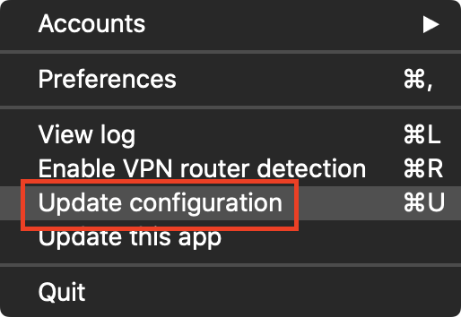 Use the Update Configuration option in the app's menu.
